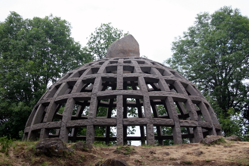 Ce matin les nuages sont beaux beaux et malins bleus blancs et gris à souhait ils capturent le Puy de Dôme d'une circonflexe attention des deux mondes en majesté le ciel et la terre nommés enceints d'un tour de main au silence incertain que la levée du jour sans renier son origine élèvera jusqu'à faire sienne les humeurs de la veille débaroulant par le travers jusqu'à la gare de départ où je sais les deux choses que les rayons du soleil même mis en terre continuent d'éclairer et le ciel et la terre. 908